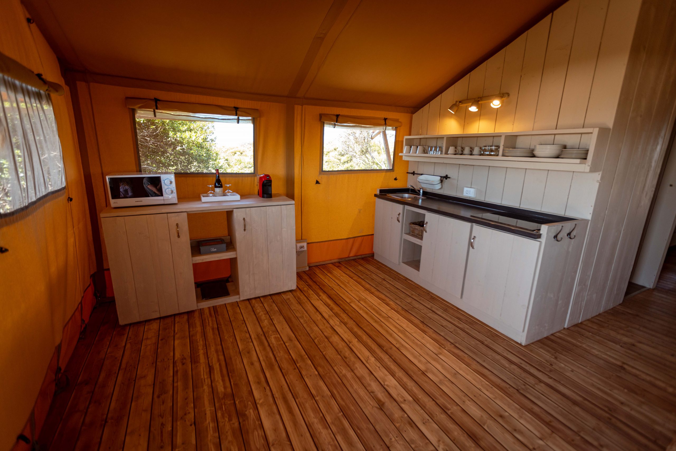 At Terre di Sacra Retreat & Glamping, we care about details. Every detail in Deluxe Tent Lodges has been designed to make your holiday pleasant and to offer you comfort and functionality. That’s why every tent of this category has a fitted kitchen with pots and dishes: our guests feel like at home but they can experience all the freedom of luxury camping and feel the atmosphere of African safari lodges.