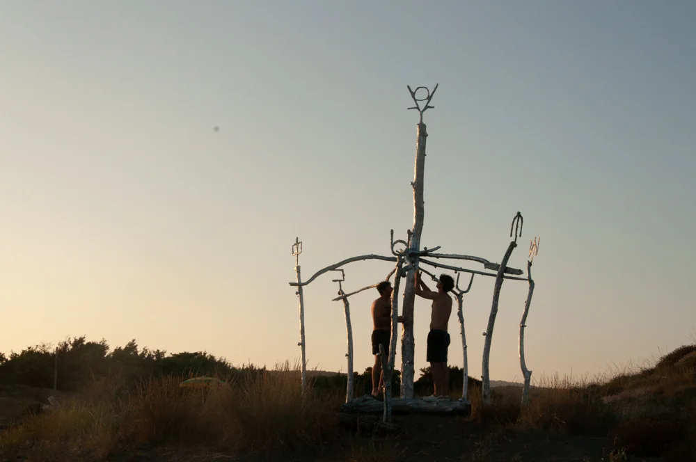 the RUNE project inhabits the beaches of Maremma with a series of installations in the landscape. Each season, the beaches will see the emergence of constructions made by residents and users to protect themselves from the sun. Each year a seasonal community leaves its mark on the landscape, transforming the territory. The project aims to construct a series of elements that integrate this way of temporal shaping of the habitat with new symbols and forms.