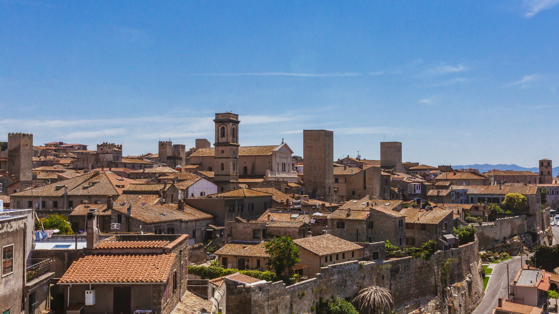 Tarquinia è una classica città collinare italiana con pareti in pietra arenaria e strade pittoresche che si arrampicano ripide verso la cima della collina. Tarquinia si trova a circa 40 chilometri a sud dalle Terre di Sacra. La città e famosa per la necropoli etrusca, meravigliosamente conservata, che si trova appena oltre le mura della città.